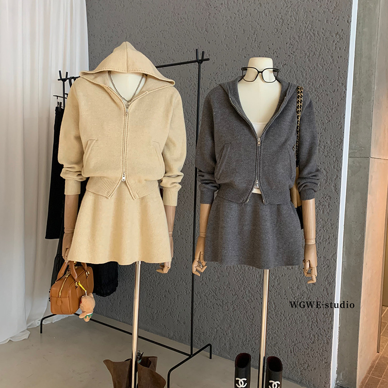 WGWE7917轻氧素颜套装 蓬松极简慵懒感毛衣开衫半身裙套装