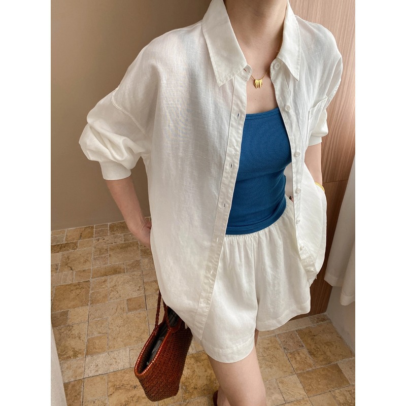 Luxi Gaya Korea Desain Kasual Kerah V Lengan Panjang Celana Pendek Netral Wanita Musim Panas Model Baru Gaya Santai Set 0886