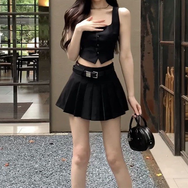 性感马甲吊带背心2025年春夏季时尚新款女纯欲百褶半裙辣妹套装