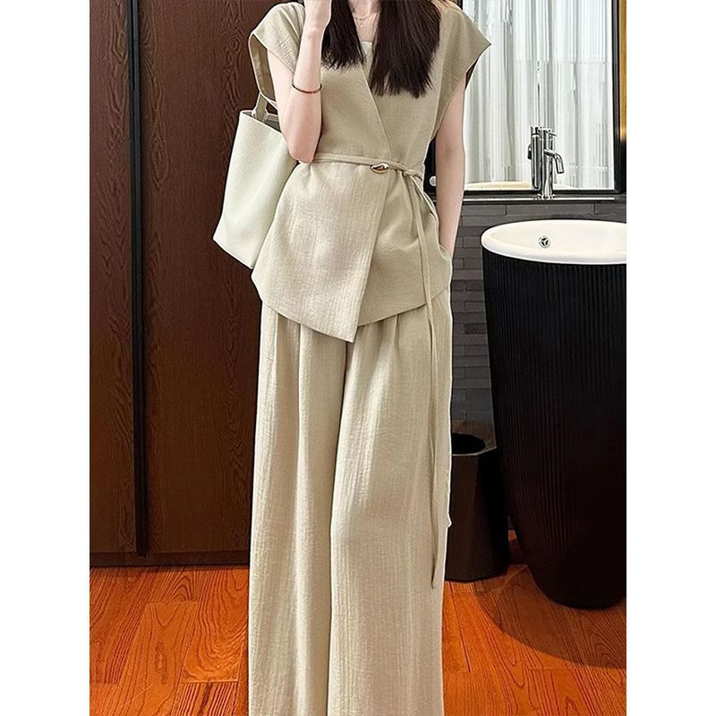 Setelan Rompi Warna Khaki Wanita Berkualitas Tinggi Kemewahan Ringan Elegan Lengkap Pakaian Musim Panas Super Panas 2025 Celana Setelan Rompi Wanita