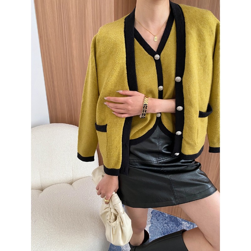 Sinan Kardigan Rajutan Chic Kerah V Blok Warna Gaya Perancis Baru Awal Musim Gugur dan Rompi Set Dua Potong SN7096.