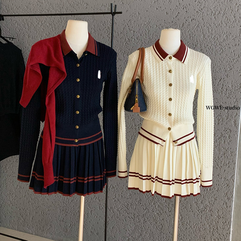 WGWE7072美式学院慵懒风穿搭两件套装秋季毛衣针织套装