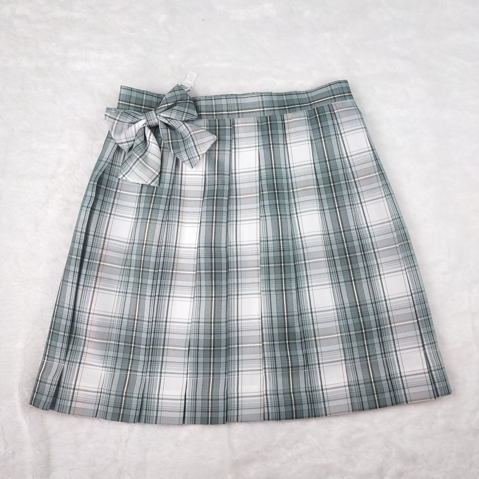 Tea Qu rok lipit hijau kotak-kotak, rok seragam JK Jepang, Rok lipit pemosisian garis dasi kupu-kupu 42cm