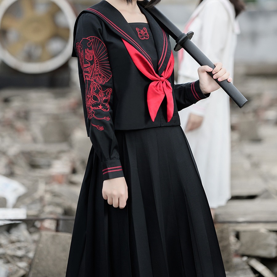 [Night awakening] seragam jk asli gaun panjang bordir gadis buruk pelaut setelan pakaian wisuda pabrik rambut lurus
