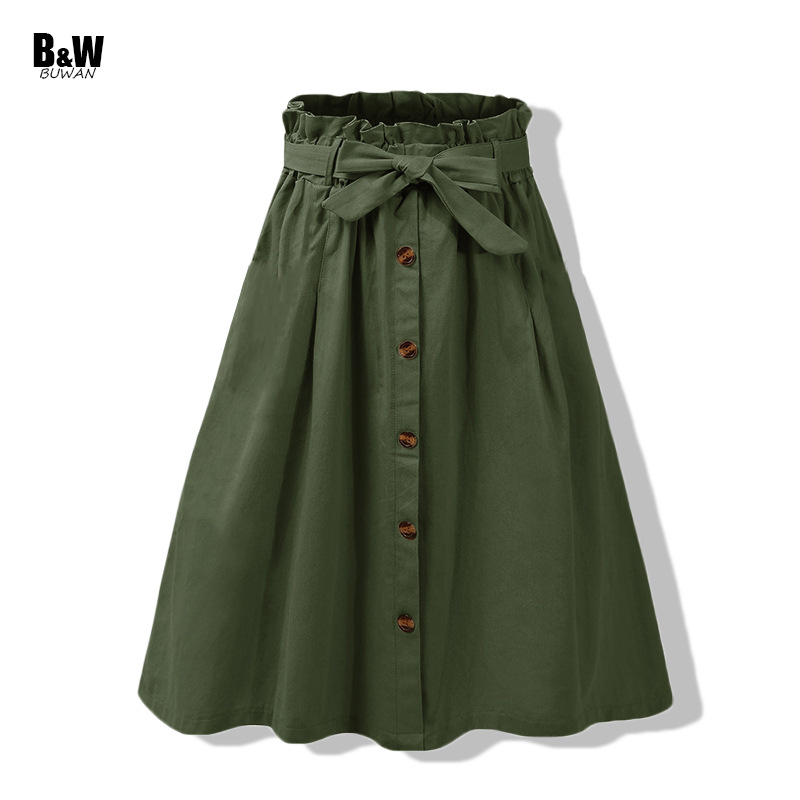 Bud bunga rok pakaian kerja, rok pinggang satu baris katun dicuci dengan sabuk garis A lintas batas pengiriman satu potong 2023