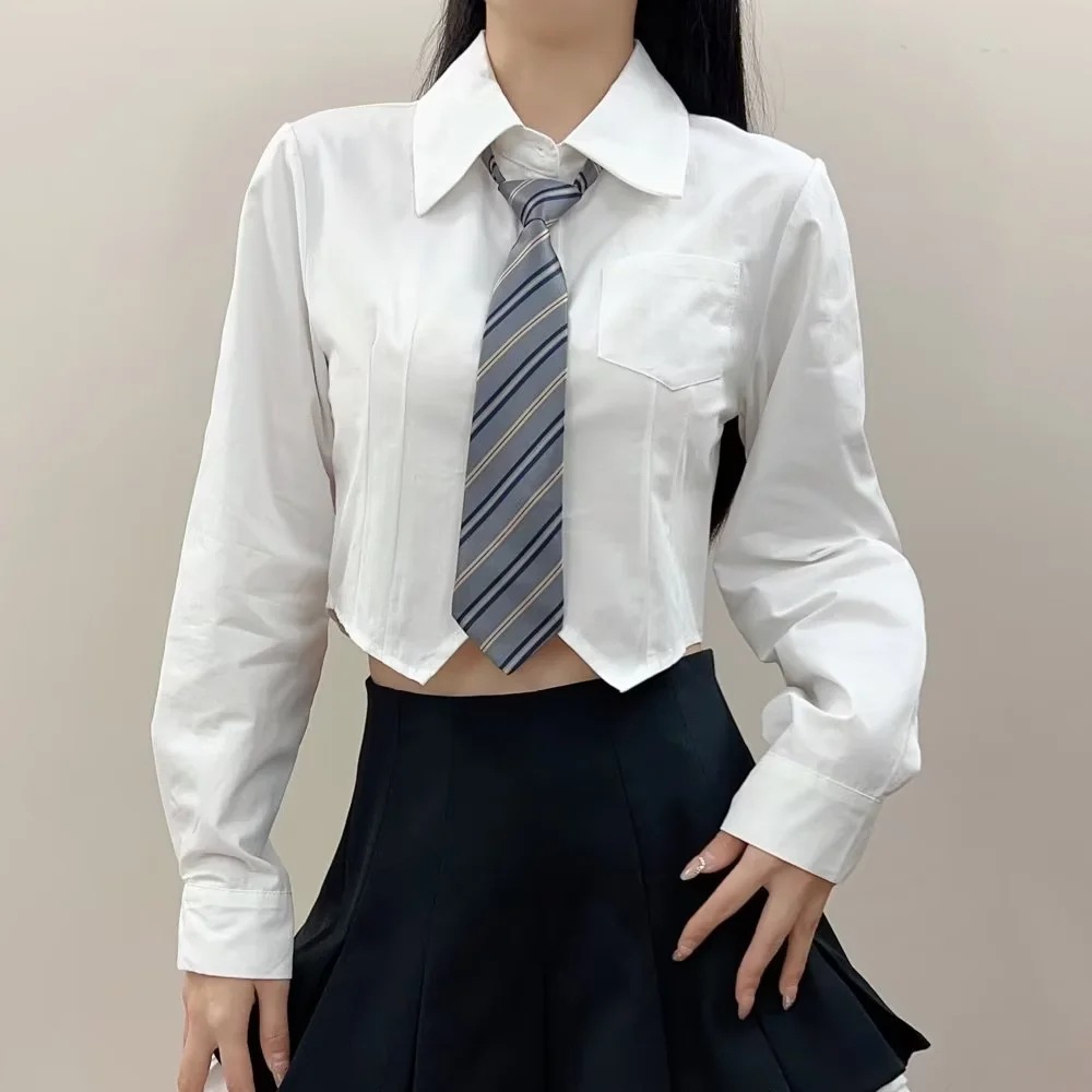 JK kemeja seragam wanita lengan panjang, atasan pendek desain gaya kampus Musim Semi dan Gugur baru lengan panjang 2024