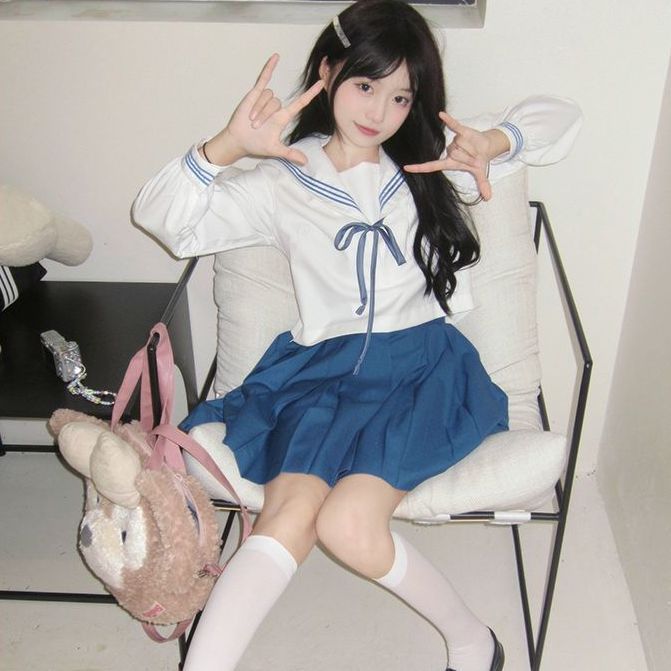 Pakaian pelaut seragam jk asli gaya sekolah Jepang seragam sekolah menengah musim gugur dan musim dingin seragam kelas Jepang dan Korea pakaian kasual