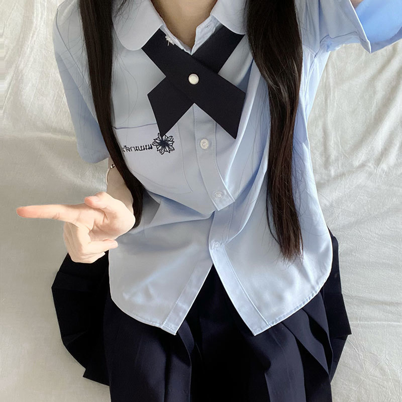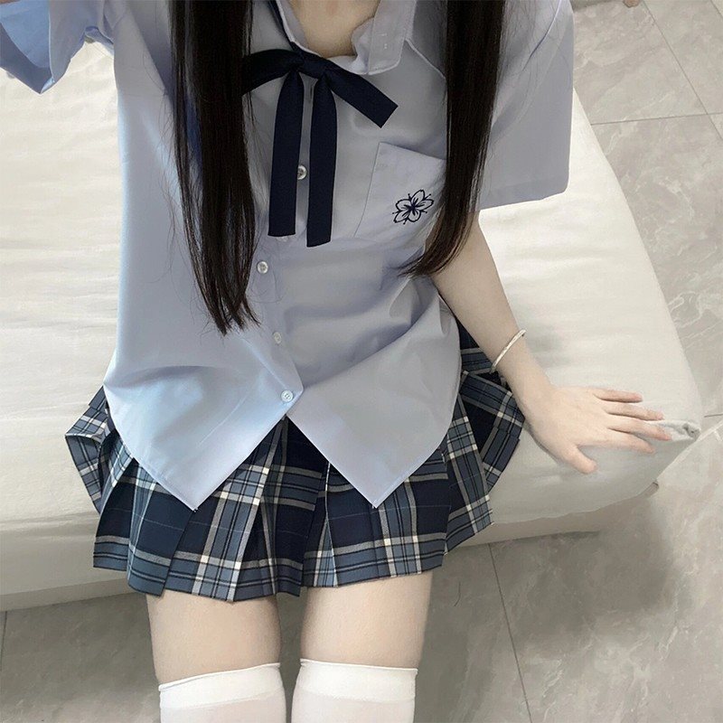 Kemeja Seragam JK Gaya Jepang Lengan Pendek Pakaian Kelas Model Baru Musim Panas Gaya Sekolahan Terlihat Langsing Model Dasar Set Rok Lipit