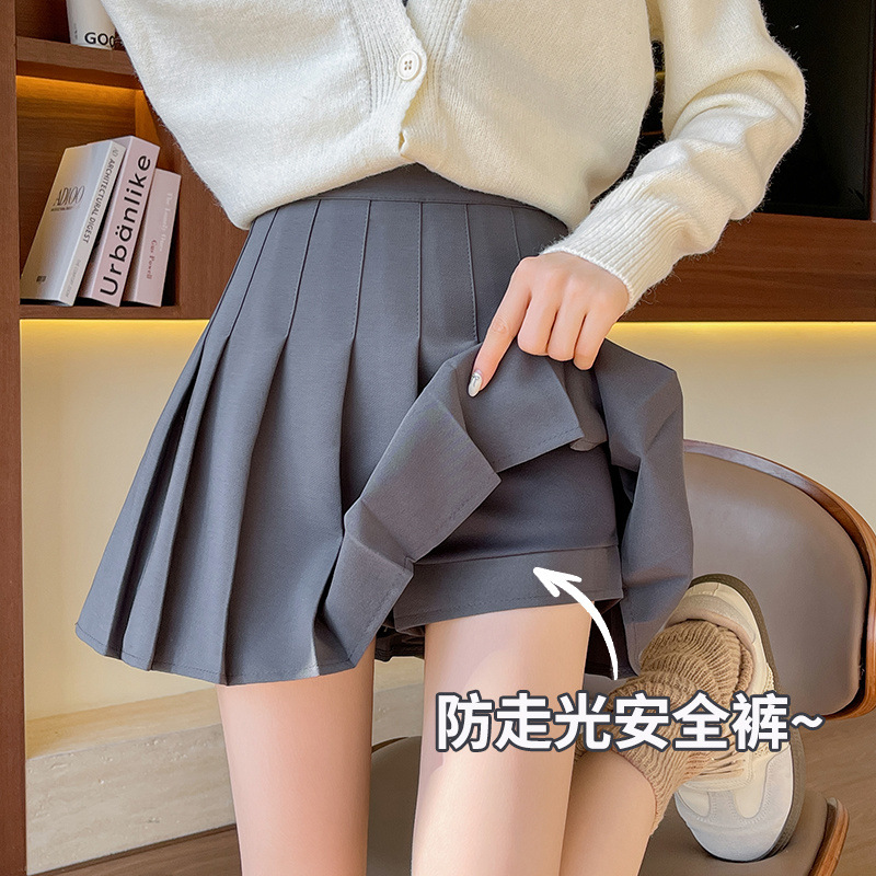 Rok Lipit Abu-abu Wanita Musim Semi dan Musim Gugur 2025 Model Baru Pinggang Tinggi Terlihat Langsing Rok Pendek JK Rok Setengah Badan Huruf A Orang Kecil
