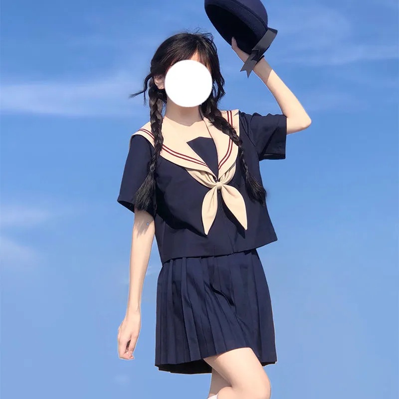 Grosir gaya Jepang preppy JK seragam panjang dan pendek rok lipit musim semi dan rok musim panas pakaian pelaut wanita dengan seragam kelas atas
