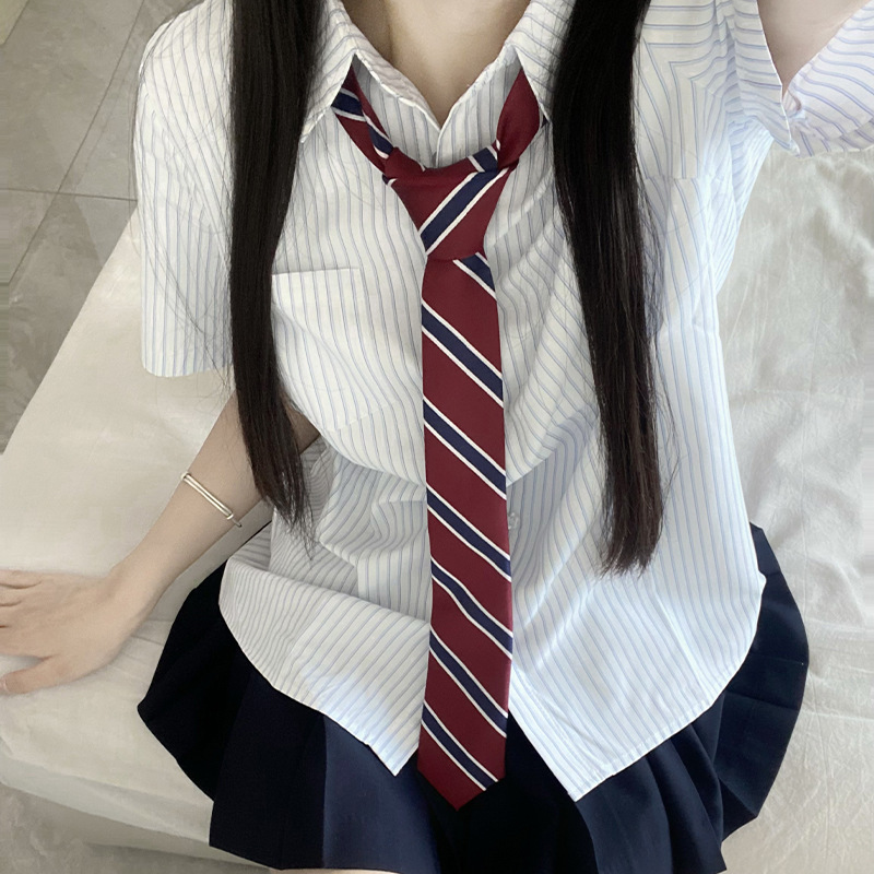 Jk seragam kemeja bergaris tipis lengan pendek wanita biasa gaya Universitas kemeja putih ceruk rasa desain teratas wanita kualitas tinggi