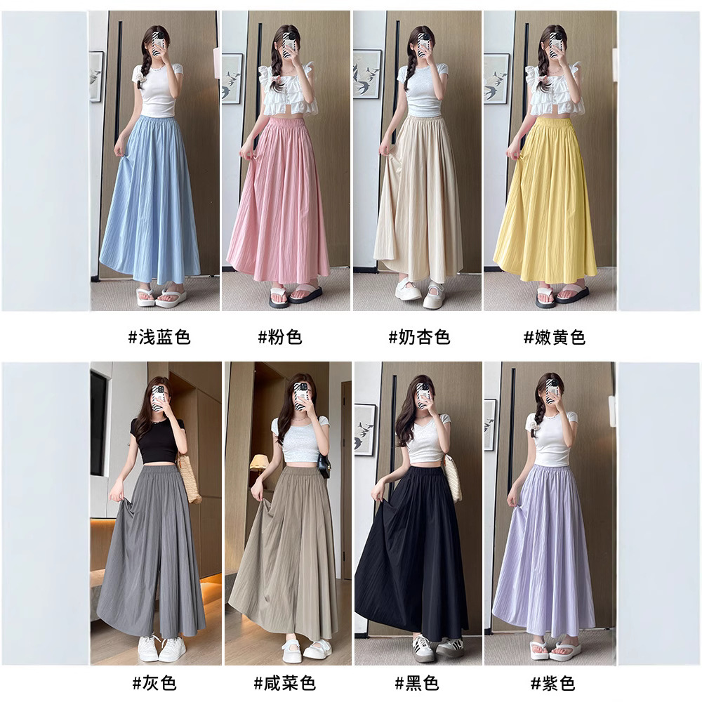 Celana Rok Wanita Yamamoto Rok Setengah Badan A-Line Terlihat Langsing Pinggang Tinggi Model Baru 2025 Musim Panas Celana Kaki Lebar Sutra Es Slim-on Kasual