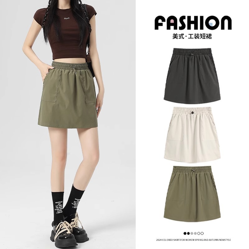Rok Pendek Kasual Pakaian Kerja Wanita Rok Setengah Badan Anti Terungkap Gaya Amerika Pinggang Elastis Orang Kecil Terlihat Langsing Mudah Dipadu Padan Mudah Dipadu Padan Musim Panas