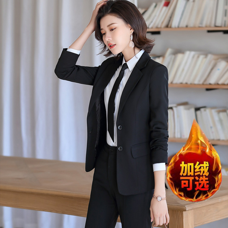 Setelan formal wanita, pakaian formal wanita jaket kecil bulu domba hitam, setelan wawancara siswa kuliah musim gugur dan musim dingin