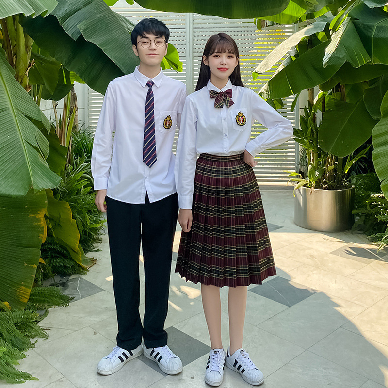 Seragam sekolah menengah, seragam sekolah menengah, lengan panjang, gaun kemeja putih dua potong, seragam kelas wisuda, pakaian pertunjukan panggung