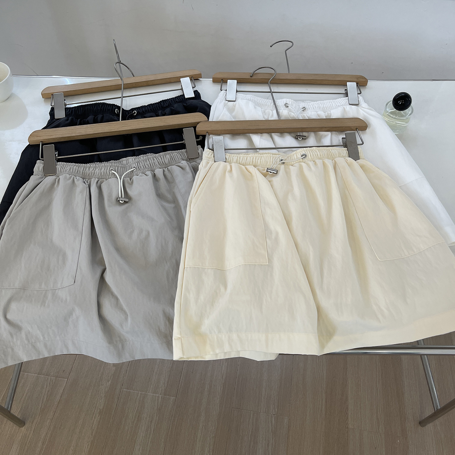 Setelan Murid Terlihat Kurus Akademi Korea Musim Panas Kardigan Berkerudung Lengan Pendek Ritsleting Ganda Celana Pendek Kaki Lebar Setelan Dua Potong Longgar