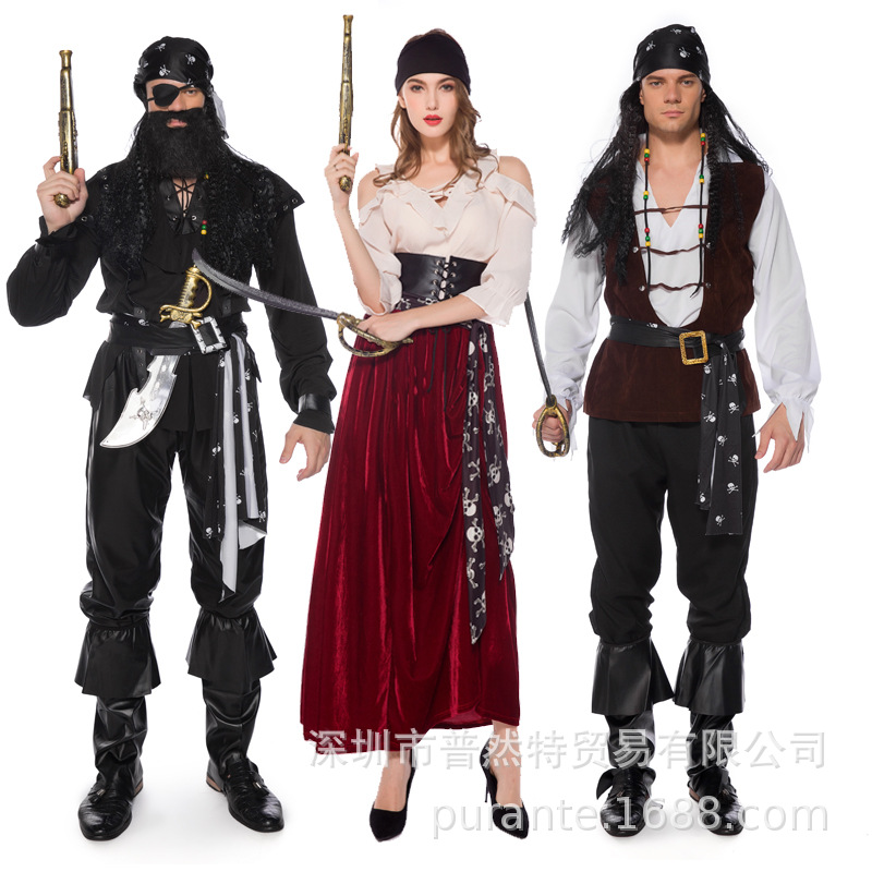 Kostum cosplay Halloween dewasa, kostum pertunjukan, kostum bajak laut dewasa, kostum Karibia