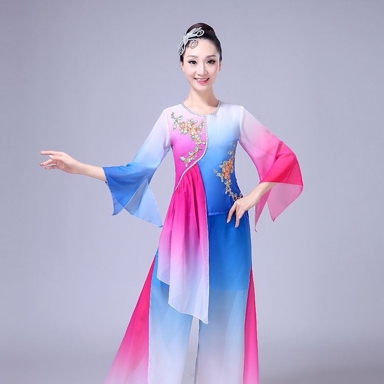 新款古典舞蹈演出服扇子民族舞服装秧歌服成人飘逸中国风练功服女
