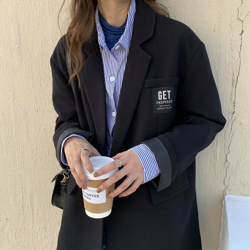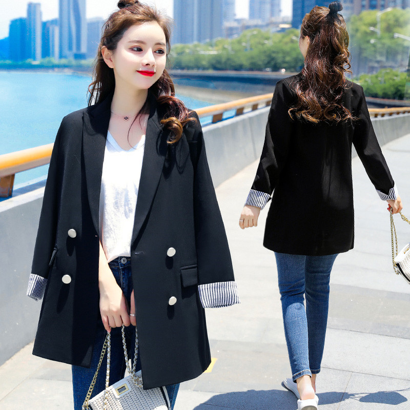 Jaket jas kecil wanita hitam baru 2022 musim gugur dan musim dingin pakaian formal profesional setelan kasual mahasiswa kecil