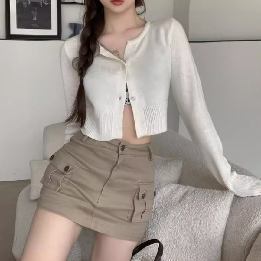 Rok Pendek Pakaian Kerja Bernapas Rok Setengah Badan A-Line Anti Terang Model Baru 2025 Wanita Rok Celana Kulot Olahraga Orang Kecil Model Tipis Musim Panas