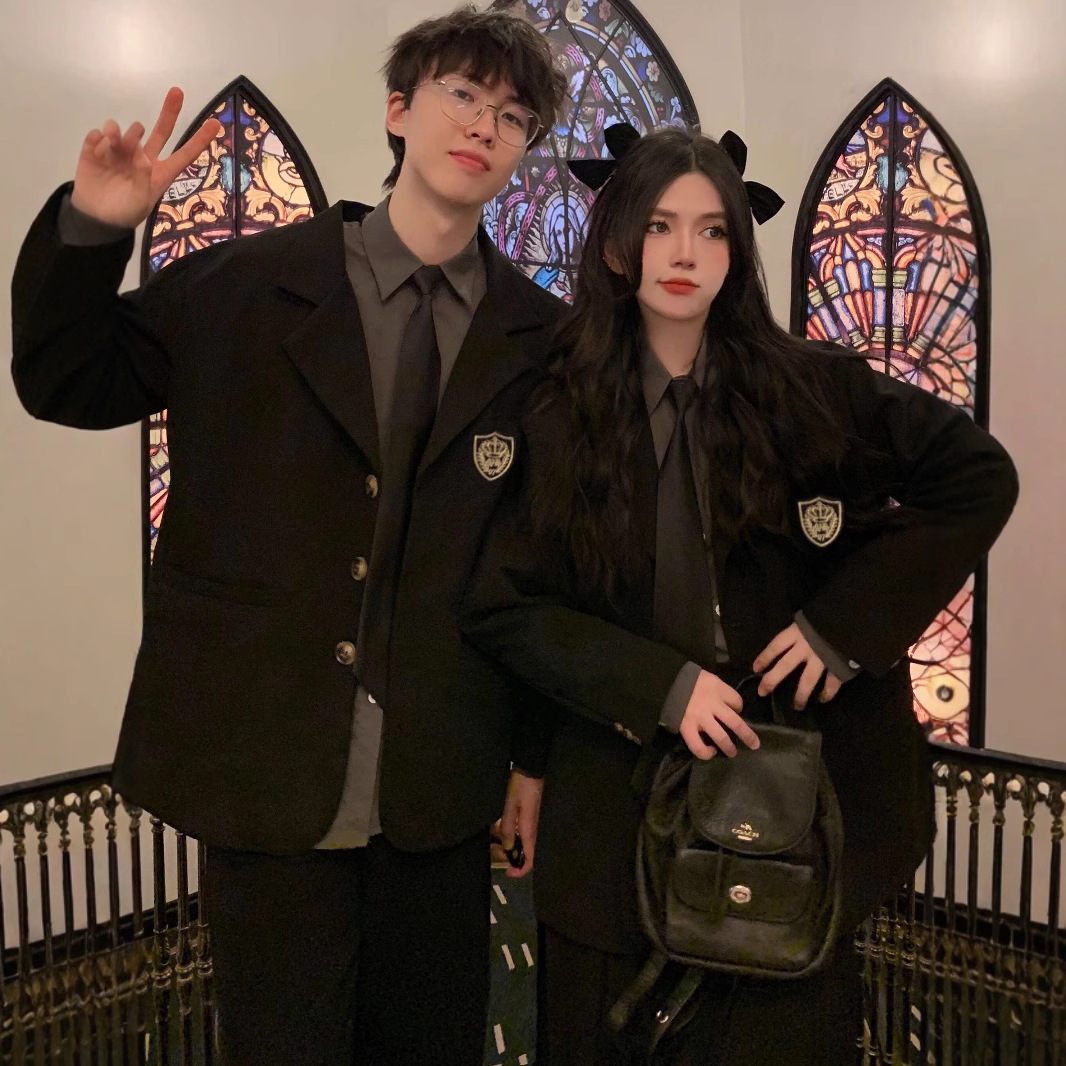 Seragam sekolah menengah, musim semi dan musim gugur siswa SMA pria dan wanita pasangan kelas olahraga rapat gaya kuliah setelan lengan panjang