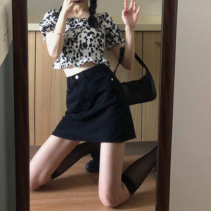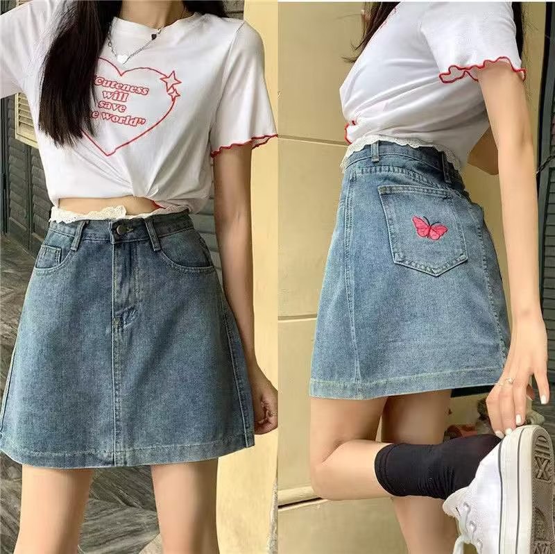 Rok pendek Denim pinggang tinggi untuk wanita 2021 rok pelangsing ukuran plus baru musim panas rok selubung siswa serbaguna rok a-line ins fashion