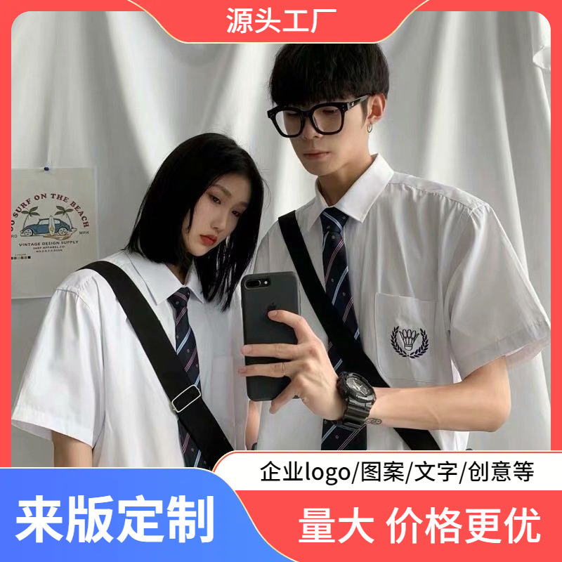 Kemeja lengan pendek gaya kuliah wanita, seragam dk seragam pasangan musim panas baju longgar Trendi Kelas siswa grosir