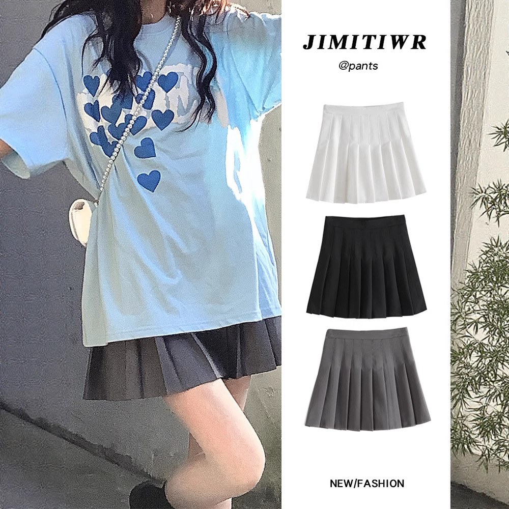 Rok Setengah Badan Warna Abu-abu Rok Lipit Musim Panas Wanita Model Baru 2025 Rok Pendek Huruf A Orang Kecil Pinggang Tinggi Musim Semi dan Musim Gugur Rok Siswa