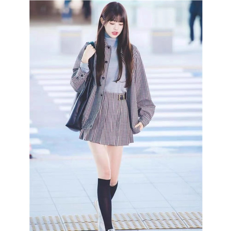 Pakaian rok lipit mantel longgar kotak-kotak gaya kuliah JK pengurang usia yang sama Mujia Zhang untuk musim gugur dan musim dingin
