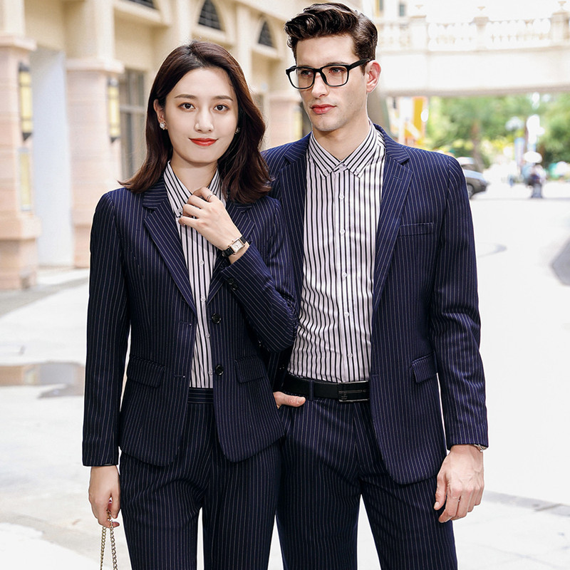 Bergaris hitam pria dan wanita setelan yang sama properti real estate perantara layanan pelanggan pakaian kerja Grup pembelian bisnis pakaian kerja