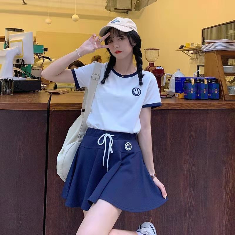 Baju gaya Barat manis garam rok pendek kecil gaya Universitas pakaian siswa tampilan Tinggi manis segar musim panas dua potong