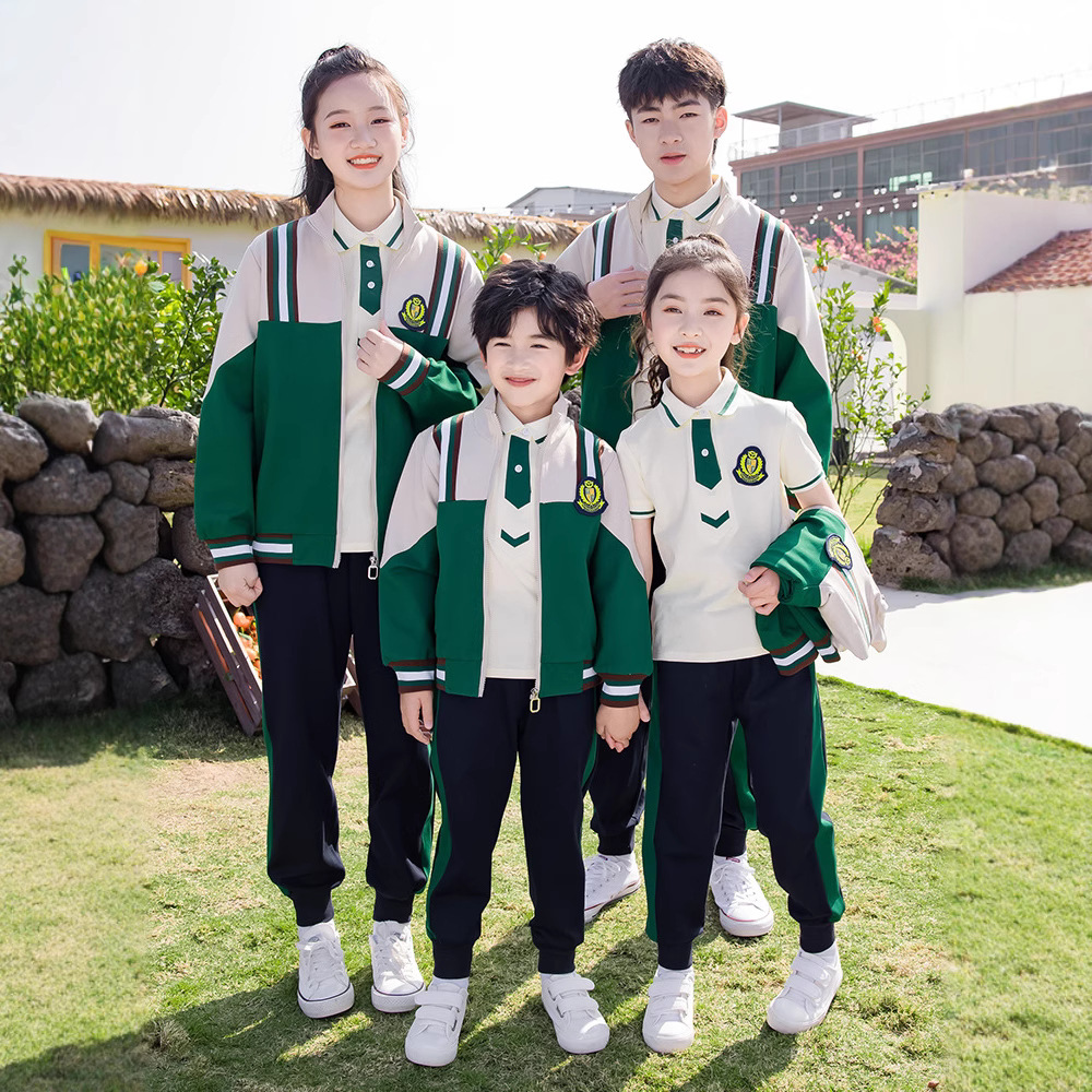 Pakaian taman kanak-kanak pakaian musim semi dan musim gugur setelan tiga potong pakaian kelas anak-anak seragam sekolah dasar musim panas siswa sekolah menengah gaya Inggris