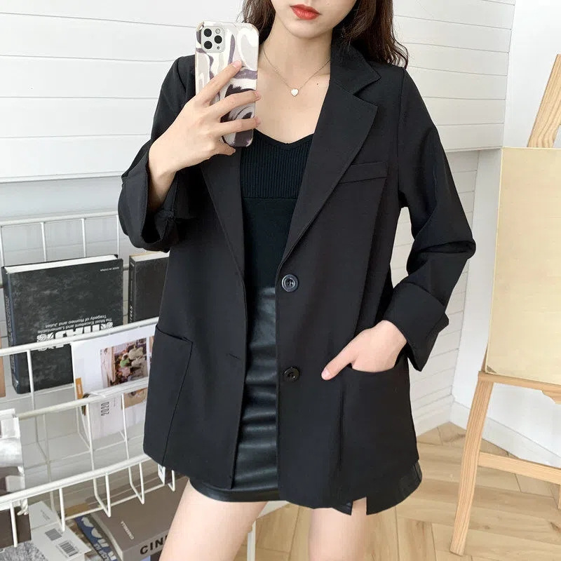 Jaket setelan untuk wanita 2023 musim semi dan musim gugur gaya Korea baru longgar netral siswa non-lapisan setelan kecil kasual untuk wanita