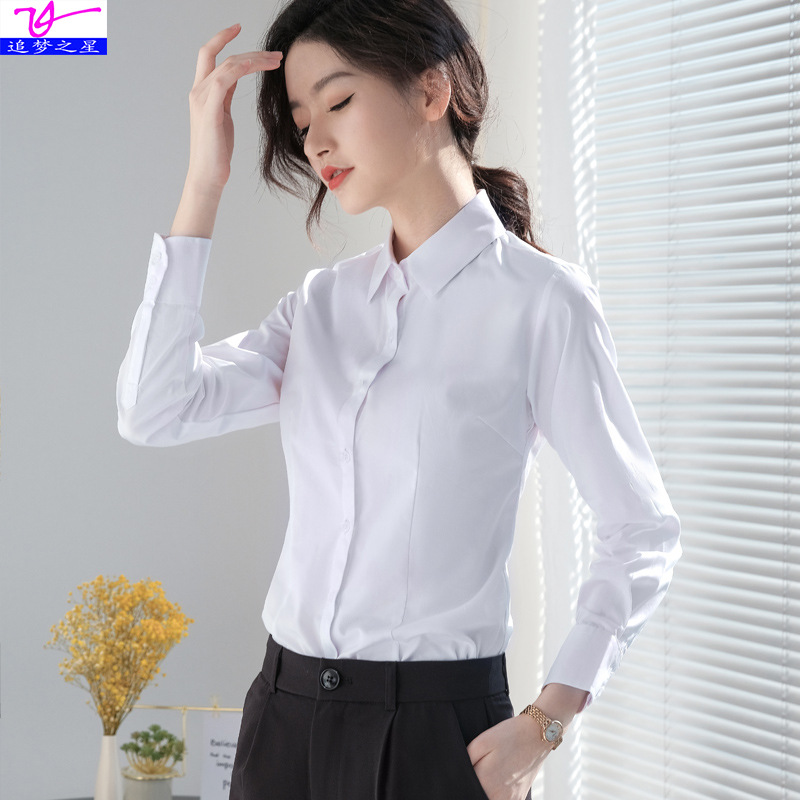 Pakaian musim gugur kecil kemeja lengan panjang wanita kemeja putih profesional ramping siswa Atasan kemeja Dalaman pakaian bisnis