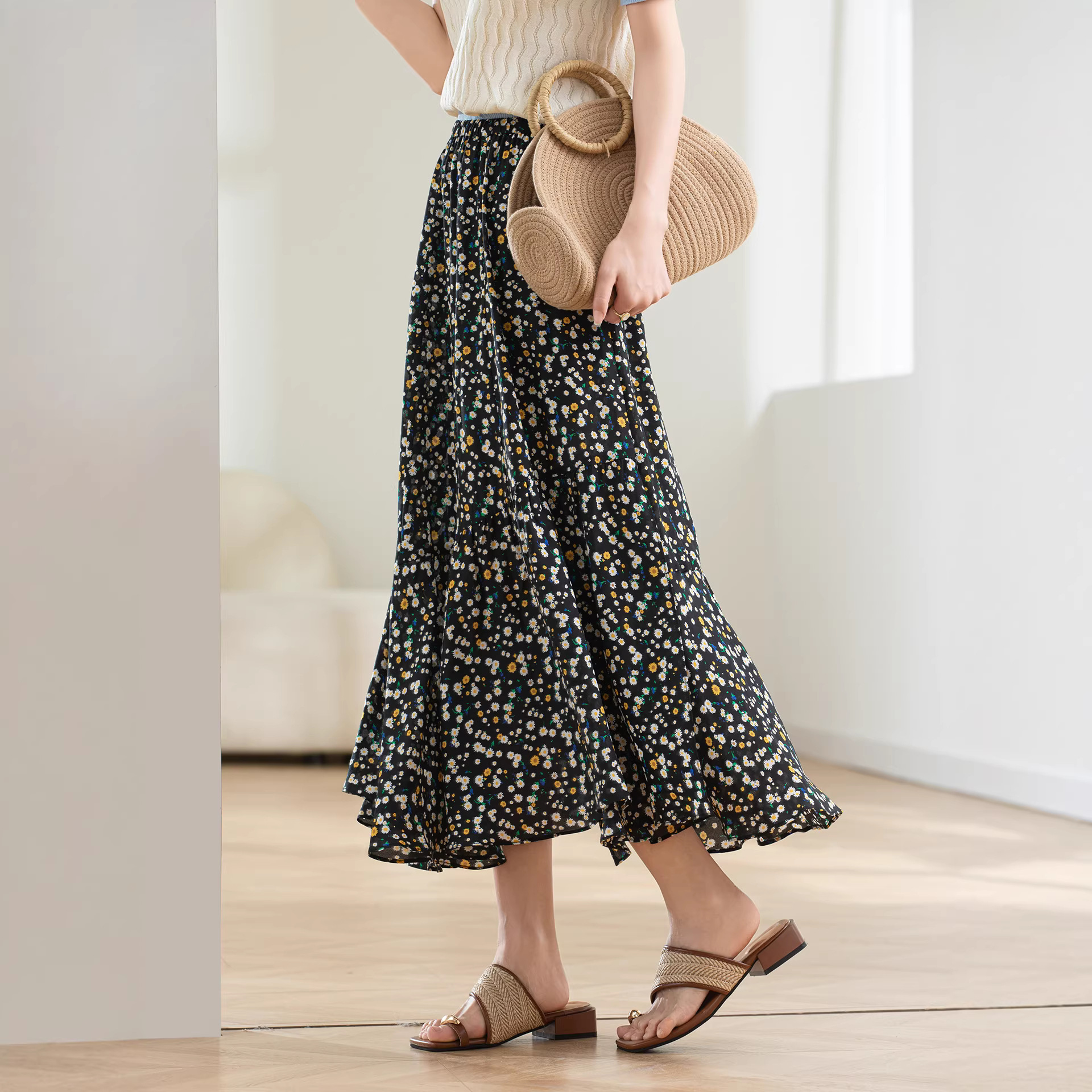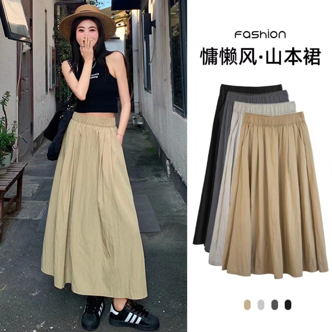 Rok lipit Yamamoto, bawahan payung ayun besar, pinggang tinggi bentuk A- line musim panas