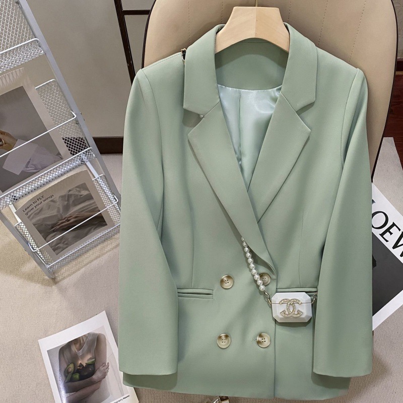 Jaket kecil wanita Mint untuk musim semi dan musim gugur baru gaya Korea kasual temperamen berkancing dua baris jaket setelan siswa untuk wanita