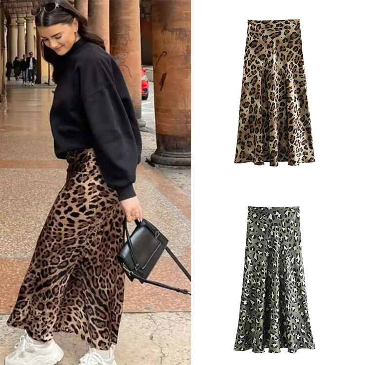 TRAFZA Gaun Setengah Badan Pola Satin Sutra Hewan Elegan Pakaian Wanita Lintas Batas Eropa dan Amerika Produk Baru Musim Semi Perdagangan Luar Negeri Satu Generasi