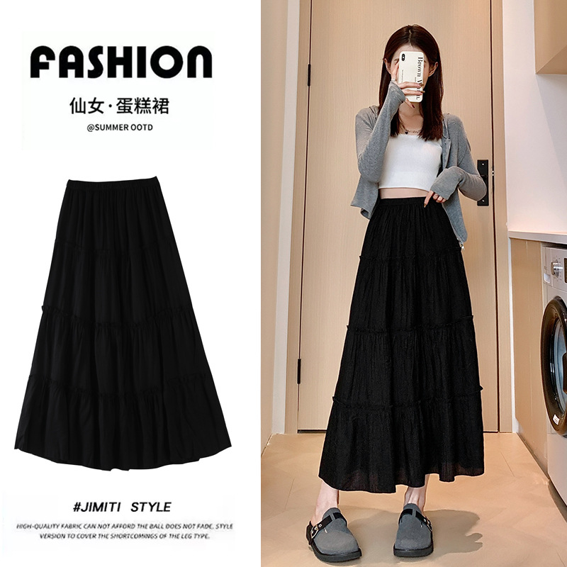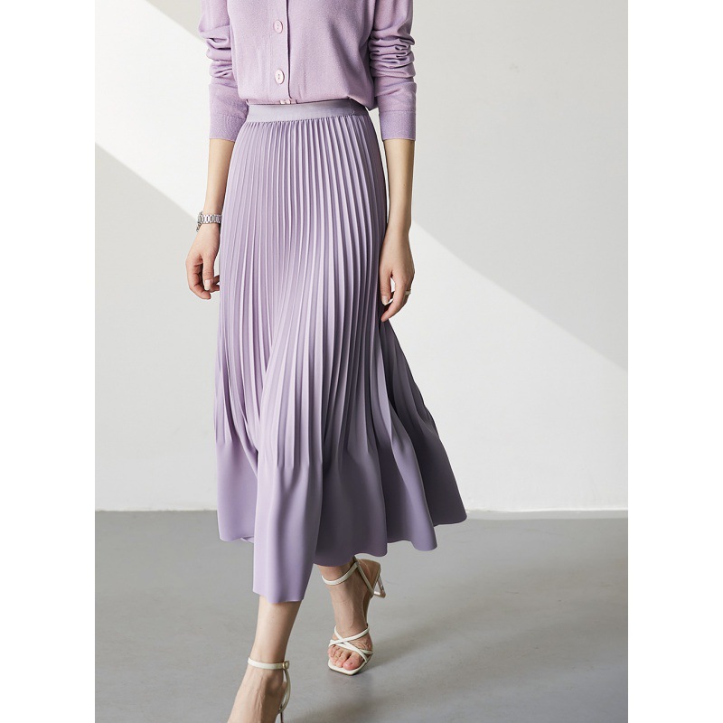 Rok lipit panjang menengah fleksibel pinggang tinggi elastis multiwarna jalan modis musim semi 2024