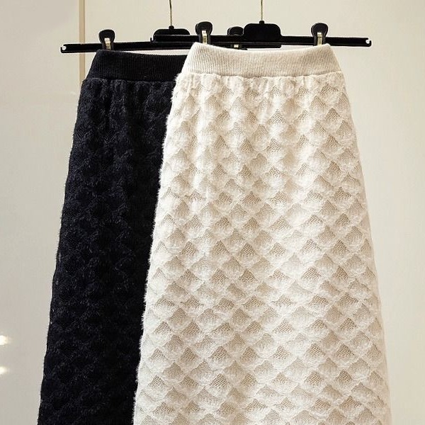 Rok Setengah Badan Rajut Dua Sisi Rok Musim Dingin Ekstra Tebal Renda Bunga Larut Air Model Panjang Sedang Wanita Musim Gugur Musim Dingin