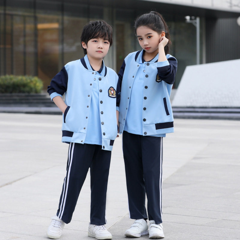 Seragam sekolah lengan panjang biru, musim semi dan musim gugur baru untuk sekolah dasar dan sekunder musim gugur seragam olahraga dan santai kelas empat potong grosir