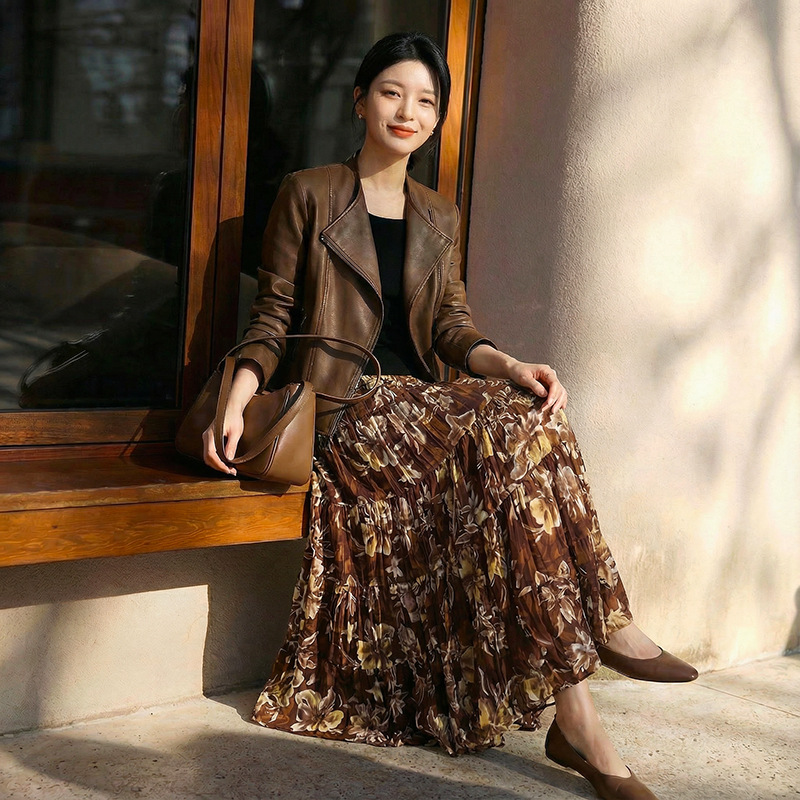 Rok Setengah Badan Lipit Sifon Gaya Lembut Mengetuk Peri Rok Panjang Sedang A-Line Terlihat Langsing Pinggang Tinggi Model Baru Musim Semi 2025 Wanita