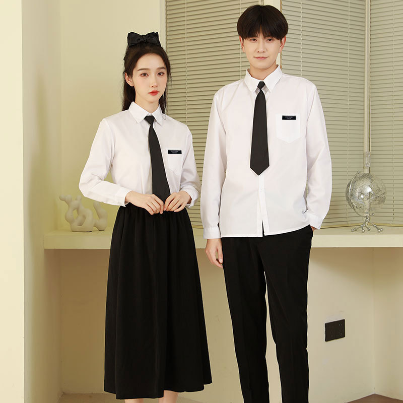 Setelan seragam kelas wisuda, setelan seragam sekolah SMA, gaya kuliah, musim gugur, kemeja putih, rok panjang gaya Korea, kinerja paduan suara wanita