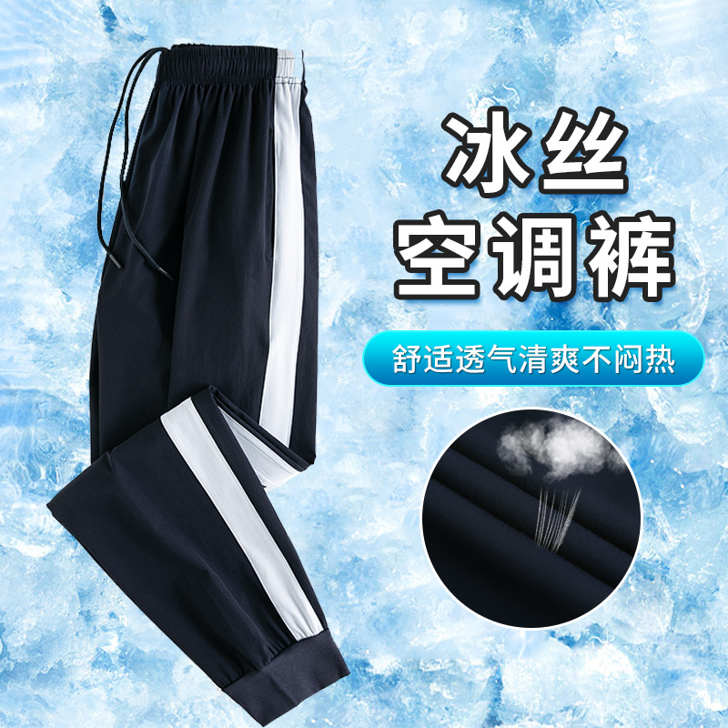 Seragam sekolah Ice Silk, seragam sekolah satu bar lebar, tipis lurus longgar, sisi putih, seragam sekolah dasar biru dongker