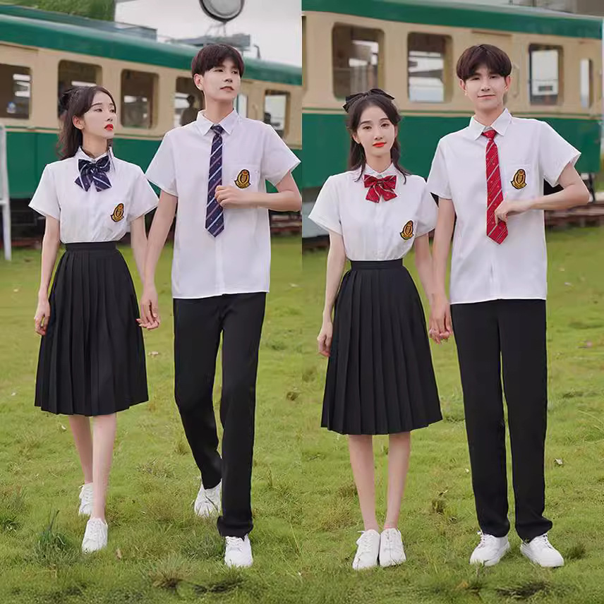 Setelan Seragam Sekolah Kemeja Putih Lengan Pendek Siswa Sekolah Menengah Gaya Sekolah