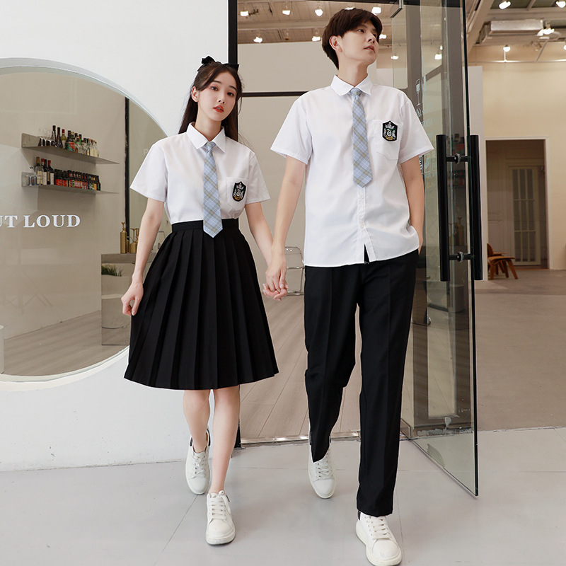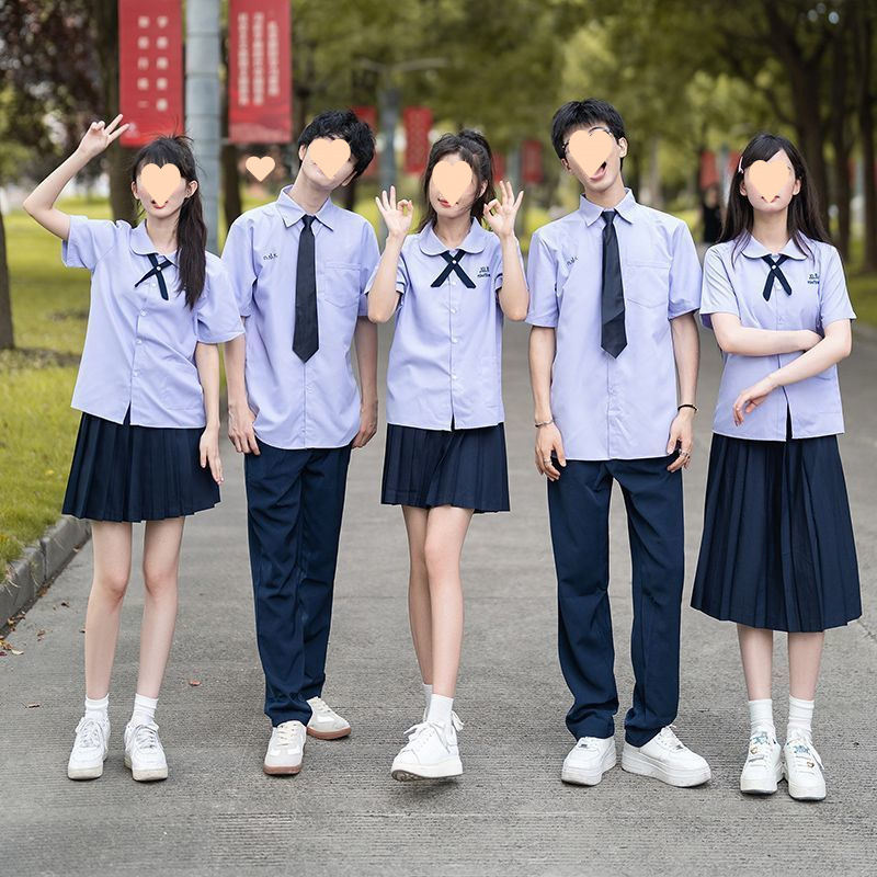 Seragam sekolah untuk siswa sekolah menengah setelan seragam kelas gaya kuliah musim panas lengan pendek foto wisuda olahraga pembukaan pakaian baru