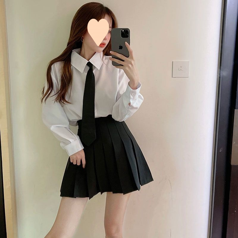 Kemeja Dasi Wanita Kemeja Seragam Putih Lengan Panjang Dipakai Luar Mudah Dipadu Padan Longgar Versi Korea Murid Model Baru Musim Semi Musim Gugur