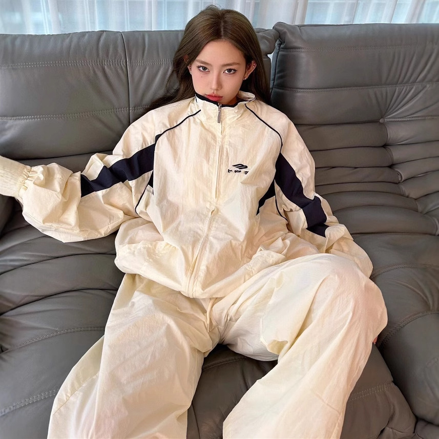 Pakaian Sekolah Olahraga Warna Kontras Model INS Bordir Huruf Bordir Rumah Paris Model Awal Musim Semi Set Jaket Jaket