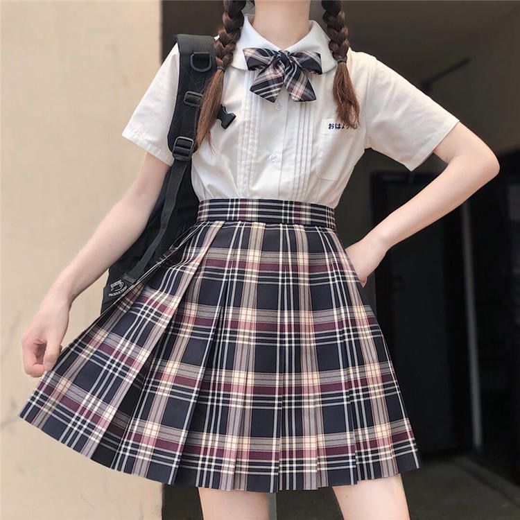 Rok wanita kotak-kotak, Rok lipit gaya Korea JK, rok seragam gaya kuliah Jepang 2023
