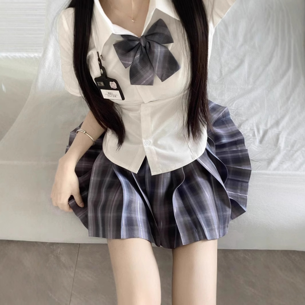 Rok lipit JK UNTUK WANITA, rok seragam ikat pinggang Musim Semi Musim Panas 2024