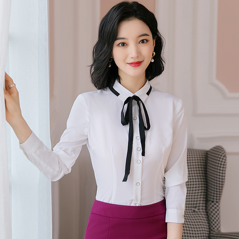 Kemeja putih Lintas Batas wanita, kemeja gaya Korea lengan panjang, pakaian formal profesional OL, temperamen plus leher V ukuran plus 2022